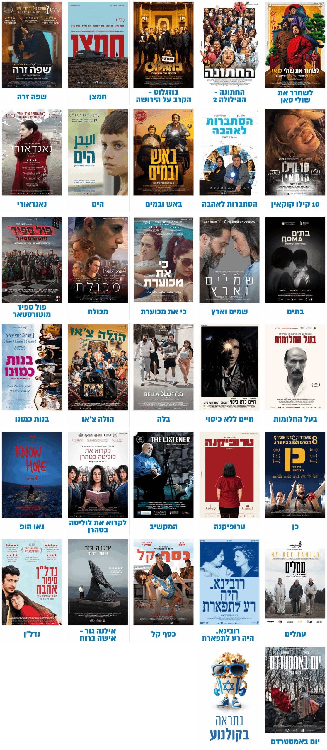 רק סרטים ישראלים ברשותות ובבתי הקולנוע | 10 ש"ח לכרטיס עד גמר המלאי | תקף להקרנות באולמות רגילים בלבד | ביום זה לא יתקבלו מבצעי 1+1, של כל חברות האשראי ולא של מועדונים | המחיר המיוחד תקף ליום 17.9.2025 בלבד | לא ניתן לקנות כרטיס במחירי המבצע עבור יום אחר | רכישת כרטיסים בקופות הקולנוע ובאתר האינטרנט או באפליקציה | במידה ולקוח רכש כרטיס ולא מימש – לא יהיה החזר כספי ולא העברה של המימוש ליום אחר | אין כפל מבצעים, עלות כרטיס ברכישה באינטרנט ביום הקולנוע כוללת תוספת רכישות אונליין, יש לבדוק | מחיר סופי באתרי הרשתות ובתי הקולנוע